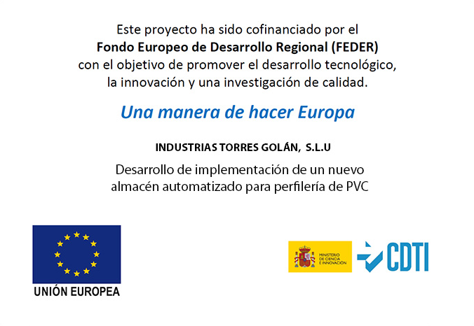 INDUSTRIAS TORRES GOLÁN SLU ha llevado a cabo el desarrollo de implementación de un nuevo almacén automatizado para perfilería de PVC con el apoyo del Centro para el Desarrollo Tecnológico Industrial (CDTI) a través de una Línea Directa de Expansión (LIC-a).